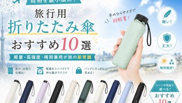 機内・移動快適グッズ 荷物を最小限に!旅行用折りたたみ傘おすすめ10選│軽量・高強度・晴雨兼用が旅の新常識 「旅道具百科」へようこそ!せっかくの旅行、天気予報に雨マークがついていると「傘を持っていくのは重いし、かといって現地でビニール傘を買うのも荷物が増えるし……」と、パッキングの手が止まってしまうこと、ありますよね。でも、今の折りたたみ傘は驚く... 2026.04.26 機内・移動快適グッズ